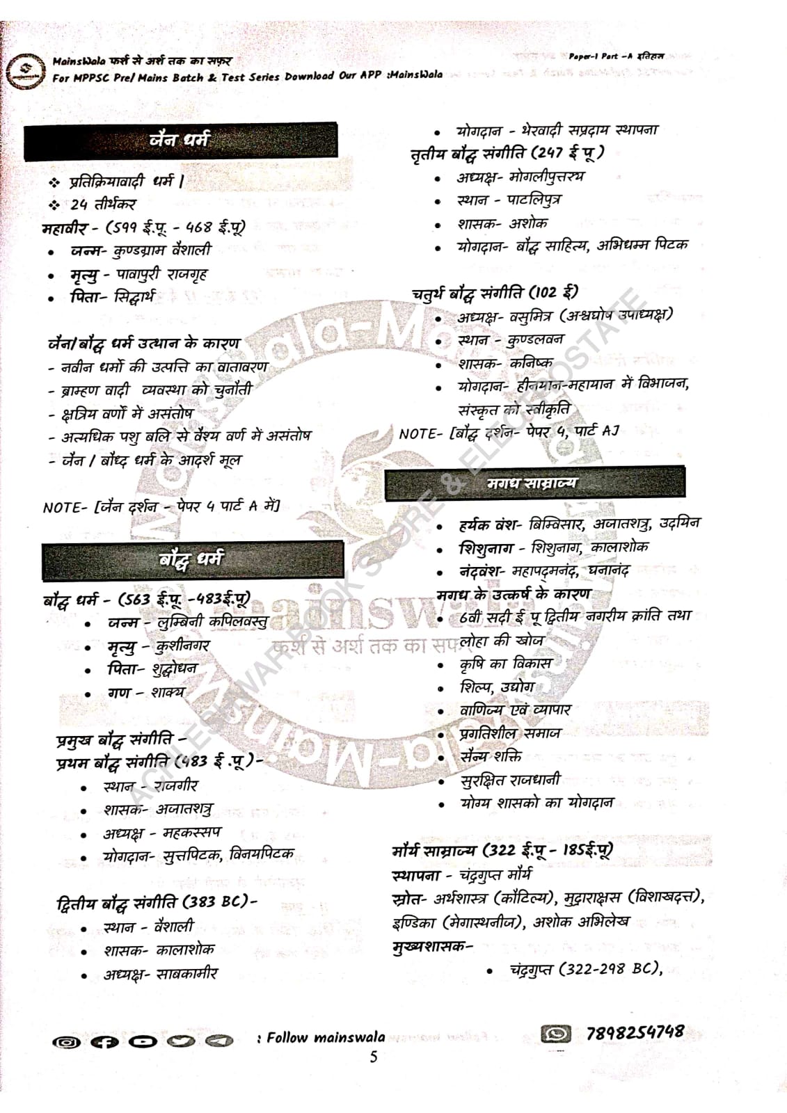 Madhya Pradesh Lok Seva Aayog ke Navin pathykram per aadharit MPPSC mains examination special mains synopsis short notes as per new syllabus 2024 paper 1 to 5 complete By, mainswala (HINDI MEDIUM)